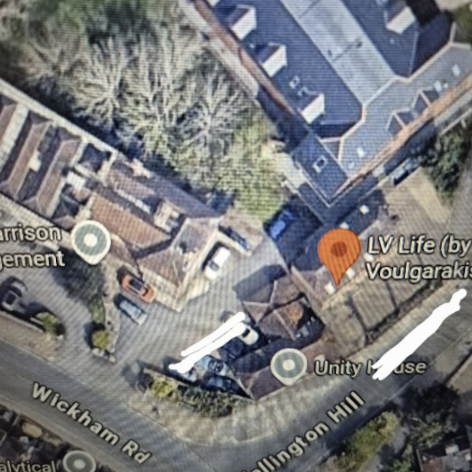 You can also park on Wallington Hill, at the side of the property after 18:00, as shown by the white lines in the photo below.